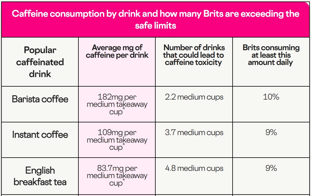 Dr Mercer, says: “While the NHS advises that 400mg of caffeine per day is a safe upper limit for most healthy adults. Exceeding these levels can lead to restlessness, palpitations and anxiety.