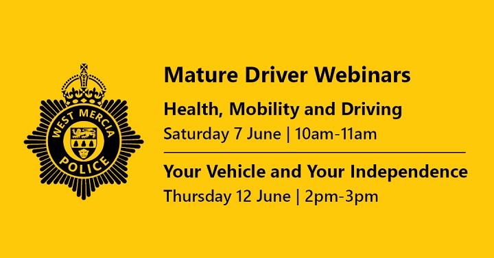 West Mercia Police are hosting two free online webinars during June, aimed specifically at mature drivers and their families.