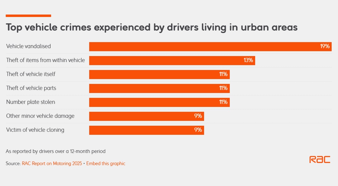 A quarter of drivers (26%) have fallen victim to vehicle crime such as theft or vandalism in the past 12 months, according to new RAC research.